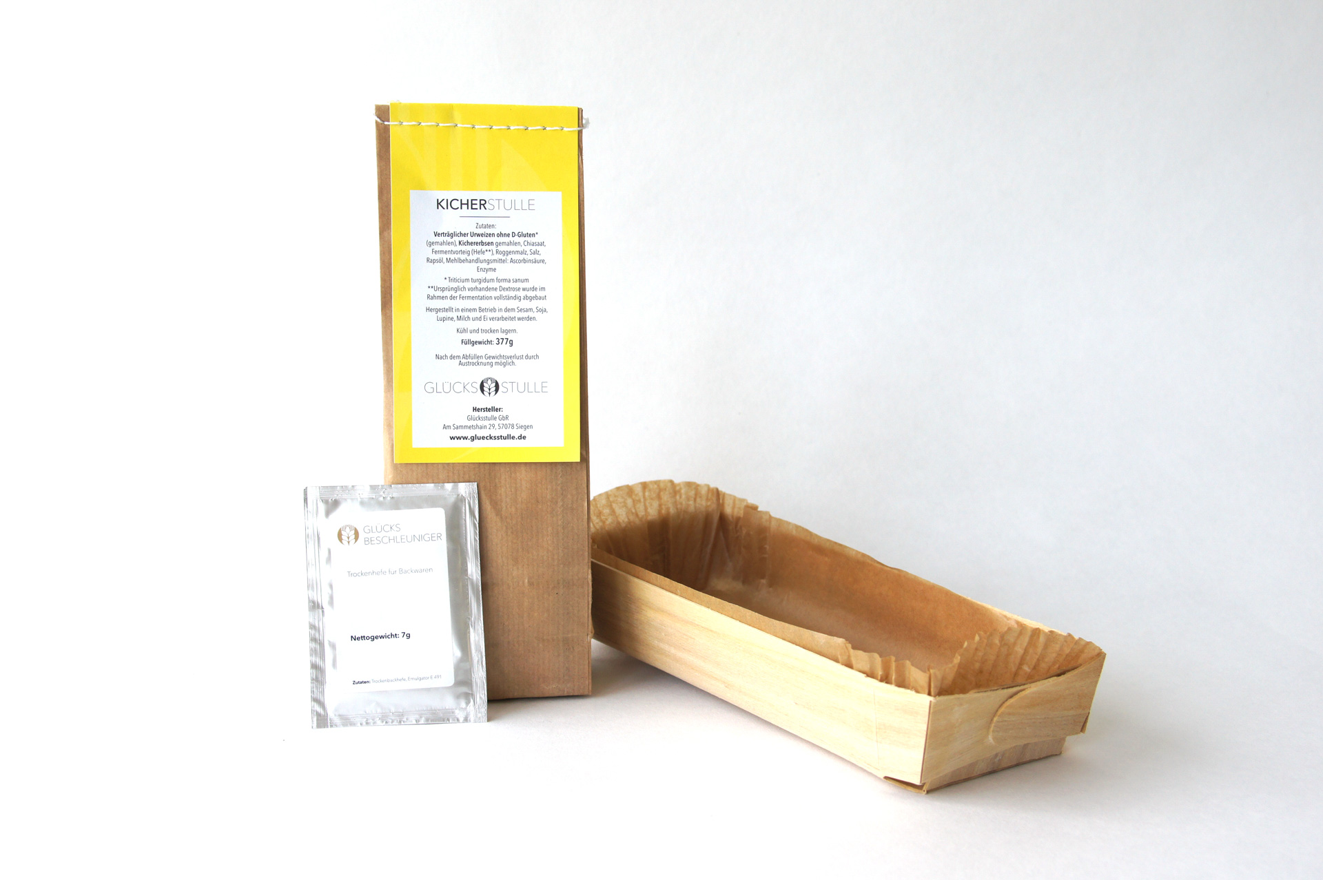 Verträglicher Urweizen ohne D-Gluten* (gemahlen), Kichererbsen gemahlen, Chiasaat, Fermentvorteig (Hefe**), Roggenmalz, Salz, Rapsöl, Mehlbehandlungsmittel: Ascorbinsäure, Enzyme